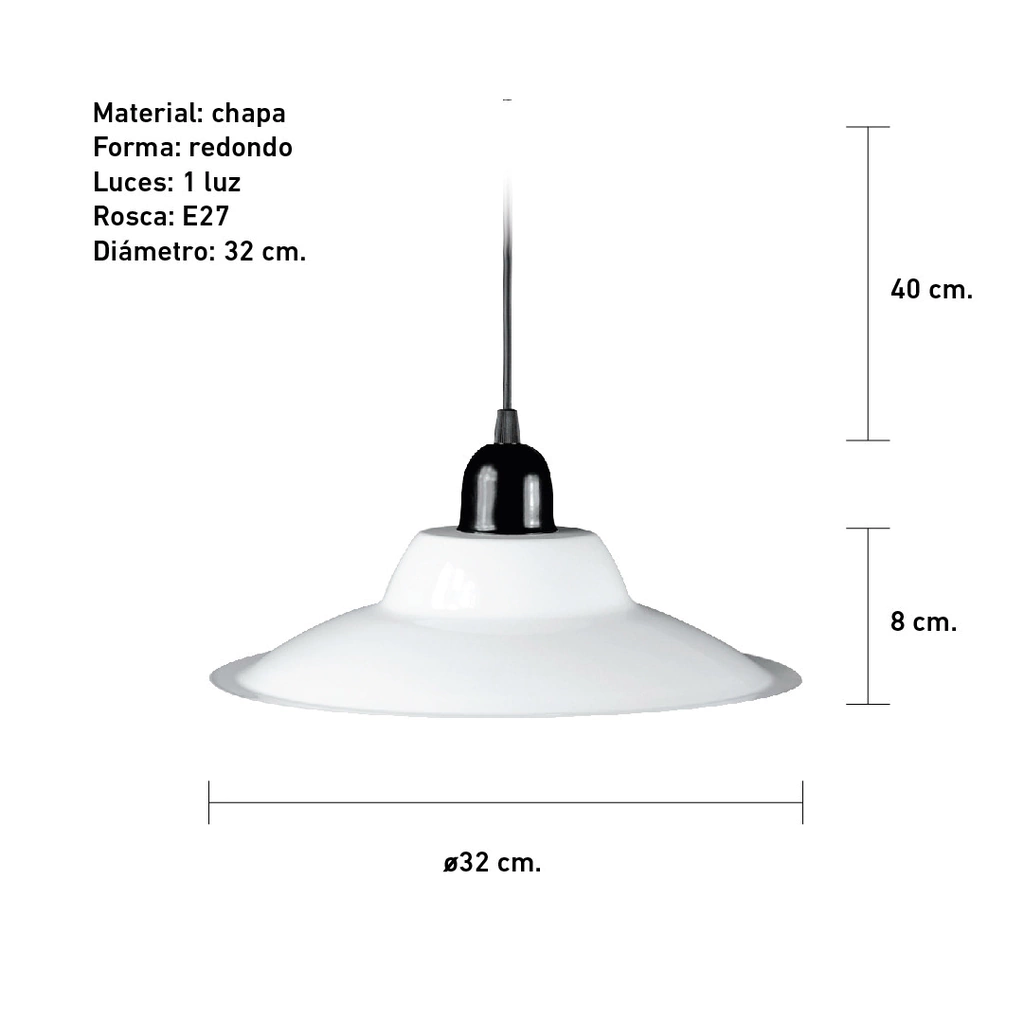 Incluye todo lo necesario para su instalación: cable, portalámpara y florón. Esto facilita el proceso y asegura que puedas disfrutar de tu nueva lámpara en poco tiempo.